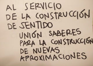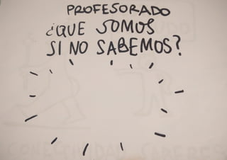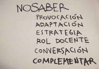 Este documento plantea tres preguntas sobre cómo trabajar desde el "nosaber" o no saber en el contexto universitario. Pregunta qué significaría trabajar desde el no saber en la situación actual, qué cambios serían importantes en el contexto universitario para hacerlo, y cómo cada persona puede contribuir personalmente.