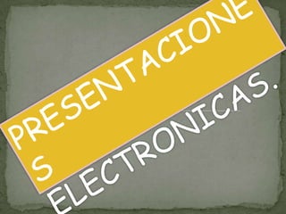 Una presentación electrónica es un conjunto de diapositivas que pueden visualizarse en la computadora o proyectarse, y que facilitan el diseño de presentaciones atractivas combinando elementos como texto, imágenes, video y animación. PowerPoint guía la composición y diseño de diapositivas y permite mejorar las presentaciones con efectos de sonido e imágenes, aunque a veces las diapositivas contienen demasiado texto o la tecnología falla. El internet permite compartir presentaciones electrónicas para que otras personas accedan a la información.