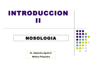 Este documento trata sobre la clasificación de enfermedades mentales. Explica que la nosología es la disciplina que se ocupa de clasificar las enfermedades, mientras que la nosografía es la descripción de las enfermedades. También discute los componentes de una clasificación psiquiátrica como lo nosológico, taxonómico y estadístico. Finalmente, resume los sistemas de clasificación CIE-10 y DSM-IV, incluyendo sus ejes y categorías diagnósticas.