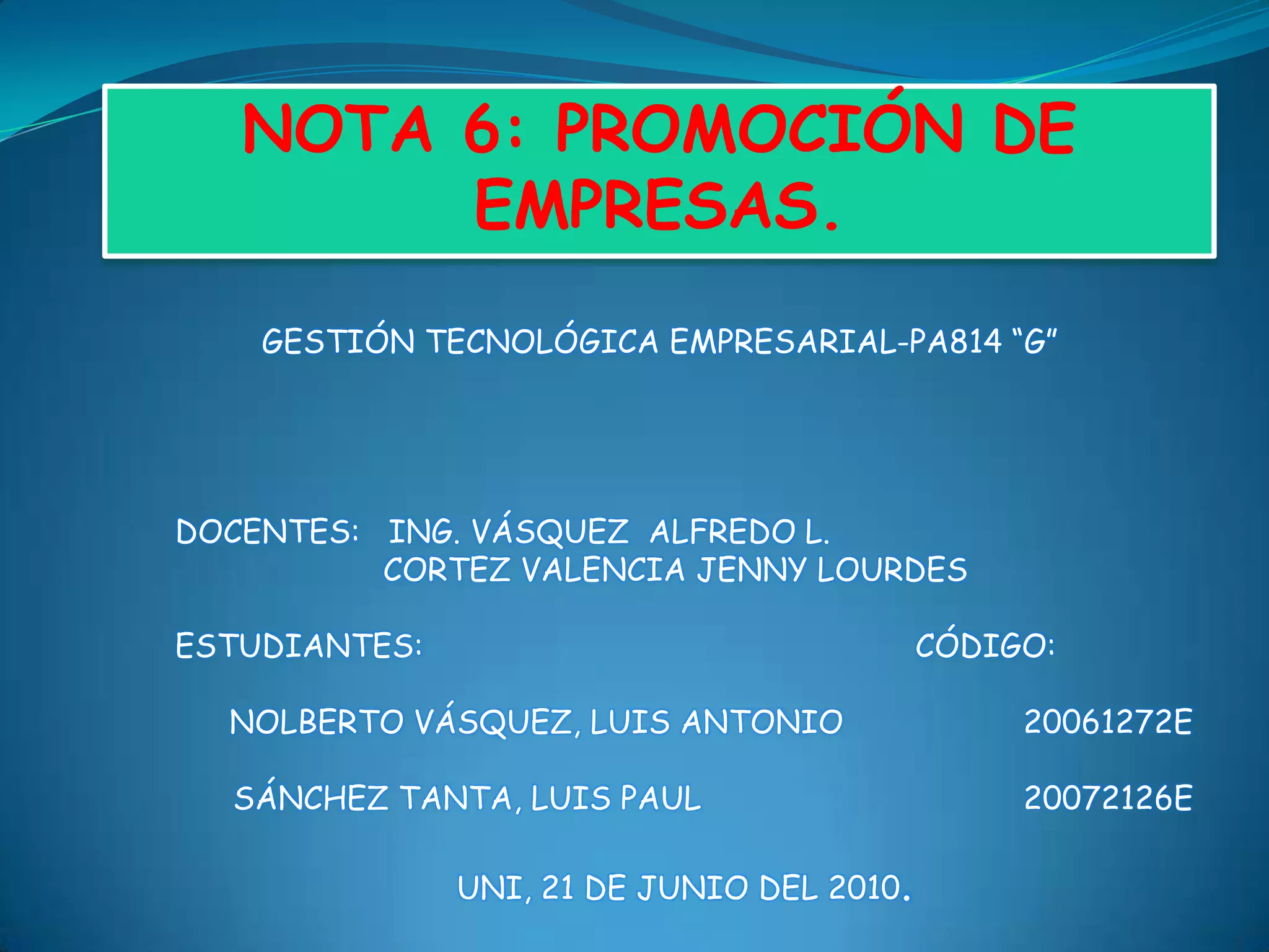 El documento presenta los servicios y formas de promoción de una empresa de ingeniería geodésica llamada Non Plus Ultra. Ofrece servicios como levantamientos topográficos, replanteos de obras, nivelaciones, catastro, suministro de equipos y personal topográfico. Promociona sus servicios a través de publicidad visual, volantes y carteles. También ofrece cursos de capacitación y consultoría profesional.