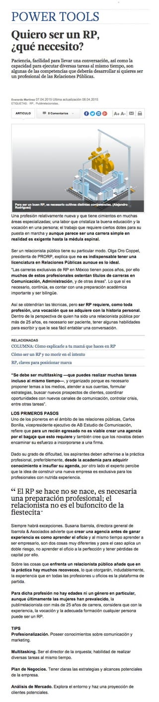 México, 7 de abril de 2015.- Everardo Martínez, periodista del diario económico El Financiero, escribe un artículo ofreciendo las claves para ser un profesional de las Relaciones Públicas.