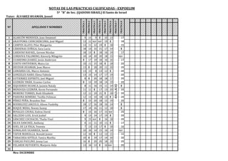Este documento presenta las notas de las prácticas calificadas de dos clases de secundaria. Proporciona las calificaciones de cada estudiante en las diferentes prácticas a lo largo del mes de diciembre.