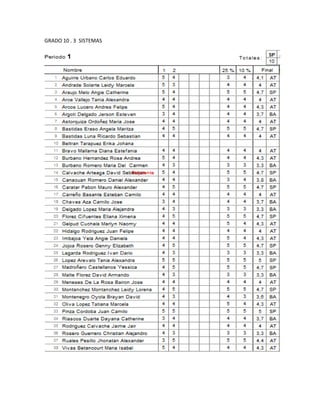 Este documento contiene una lista de cursos de ética, valores y sistemas para los grados 8 a 11, incluyendo cursos como Ética y Valores para los grados 8-2 al 8-5, Sistemas para los grados 8-5 y 9-1, y más cursos de Sistemas para los grados 10.3 a 10.5 y 11.5.