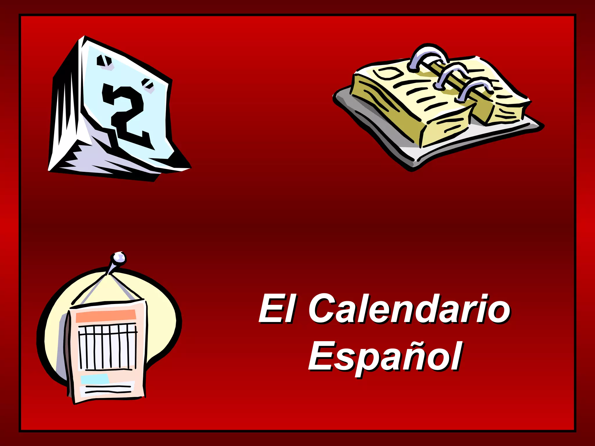 Este documento proporciona información sobre el calendario español, incluyendo los días de la semana y sus formas masculinas, los plurales de sábado y domingo, y vocabulario relacionado con fechas como hoy, mañana, ayer, semanas y meses. También cubre estaciones del año, números, fechas escritas, y días festivos importantes como la Navidad, Año Nuevo y el cumpleaños de Jesús.