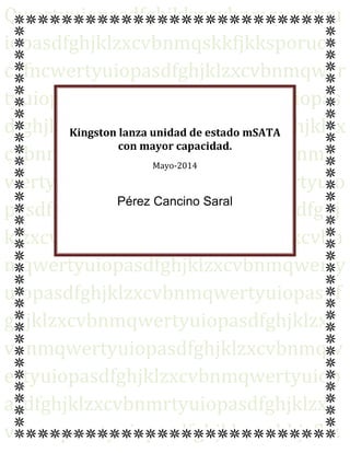 El documento no contiene información relevante. Consiste principalmente en texto sin sentido y repetitivo. Se mencionan brevemente dos noticias: Kingston lanza una unidad SSD mSATA con mayor capacidad, y AMD estrena la tarjeta gráfica más rápida del mundo.