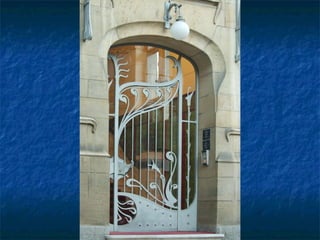 El movimiento modernista surgió a finales del siglo XIX como una reacción contra el historicismo y la industrialización. Buscaba encontrar un estilo propio para la sociedad industrial que conciliara lo moderno y lo natural. El Art Nouveau rompió con el pasado al proponer formas orgánicas y emotivas inspiradas en la naturaleza, aunque su enfoque fue insuficiente. Posteriormente, movimientos como el Jugendstil alemán y el modernismo catalán de Gaudí desarrollaron un estilo más orgánico que reflejaba