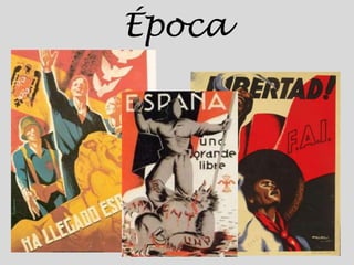 El documento describe el período conocido como Novecentismo en España en el siglo XX, caracterizado por una crisis económica y política que llevó a la dictadura de Primo de Rivera en 1923 y la Segunda República en 1931, así como una guerra civil entre 1936-1939. La sociedad española sufría atraso pero las clases medias prosperaban, mientras las fuerzas conservadoras y obreras se radicalizaban. El Novecentismo se inspiró en Europa, promovió el antirromanticismo y pureza artística, y valoró el rigor intelect