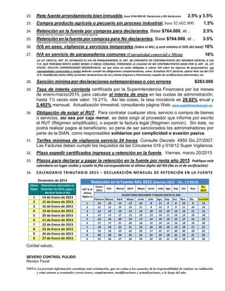 Este documento proporciona información sobre novedades laborales, tributarias y otros aspectos para el año 2015, incluyendo el salario mínimo, subsidio de transporte, tasas de aportes a la seguridad social, retenciones en la fuente, plazos de declaración de impuestos, tasas de interés moratorias y más. El documento contiene 34 puntos con información relevante para administradores, contadores y otros usuarios.