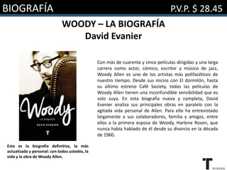 Este documento presenta novedades de libros de varios géneros como biografía, novela, ensayo, cocina, esoterismo, espiritualidad y salud para el mes de marzo de 2017. Se resumen títulos como "Woody - La biografía", "Quince perros", "La muerte de los héroes", "La mirada de la justicia", "La cocina de Jamie Oliver" y "El libro de la longevidad".