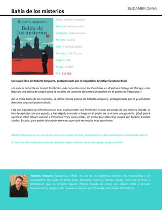 1) Bahía de los misterios de Roberto Ampuero, una novela policial protagonizada por el detective Cayetano Brulé.