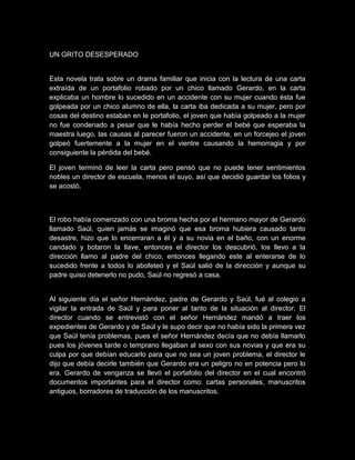 La novela trata sobre una familia que enfrenta varios problemas que comienzan cuando el hijo mayor, Saúl, le juega una broma a su novia que termina en problemas en la escuela. Esto lleva a que Saúl deje su casa. Mientras tanto, el otro hijo, Gerardo, roba el portafolio del director de la escuela y encuentra una carta que revela detalles de un accidente pasado. Eventualmente, Saúl se suicida luego de una discusión con su padre. La familia logra reconciliarse con el tiempo gracias