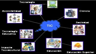 El documento describe las nuevas tecnologías de la información y la comunicación (NTIC) y su uso en la educación, las empresas y la sociedad. Las NTIC permiten transmitir, procesar y difundir información de forma instantánea a través de las telecomunicaciones, la informática y la tecnología audiovisual. En la educación, las NTIC brindan herramientas para procesar información y facilitar la enseñanza de manera más fácil. En las empresas, las NTIC aumentan la productividad y competitividad al almacenar, proces