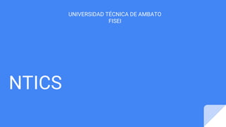 El documento describe las Nuevas Tecnologías de la Información y la Comunicación (NTIC) como el conjunto de tecnologías para gestionar, almacenar, enviar e información. Explica que las NTIC han llevado a la sociedad a la era de la información y una revolución tecnológica sin precedentes. Finalmente, señala que es tarea de los educadores utilizar las NTIC para proporcionar formación a los estudiantes y mejorar su calidad de vida.