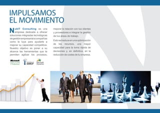 Nubit Consulting ofrece soluciones tecnológicas integradas para mejorar la competitividad de las empresas a través de la optimización de procesos y la gestión eficiente de recursos. Utilizando la tecnología de Microsoft Dynamics, brindan asesoramiento personalizado y soporte técnico para diversas industrias, garantizando la adaptación de sus herramientas a las necesidades específicas de cada cliente. Su enfoque se centra en la planificación detallada y el trabajo en equipo, asegurando el éxito y la satisfacción en cada proyecto.