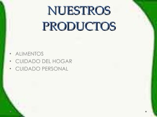 El documento presenta una lista de productos de diferentes categorías como alimentos, cuidado del hogar y cuidado personal, y brinda una breve descripción de cada marca y sus principales características y beneficios. Algunas de las marcas destacadas son Fruco, líder en salsas en Colombia; Lipton, que proporciona sensación de vitalidad; Jabón Barrigón, que ofrece rendimiento y economía; Coco Varela, desarrollado para prendas delicadas; Axe, línea de productos para el baño; y Sedal, experta en