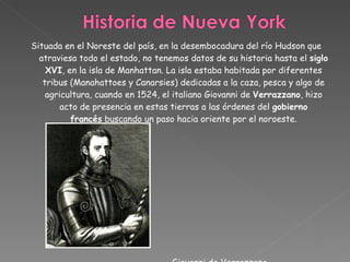 La ciudad de Nueva York se encuentra en el noreste de Estados Unidos, en la desembocadura del río Hudson. Fue fundada por holandeses en el siglo XVII y luego pasó a manos inglesas. En el siglo XIX se convirtió en un importante centro de inmigración. Actualmente es una de las principales ciudades del mundo y alberga importantes atracciones como Times Square, Central Park y el Empire State Building.