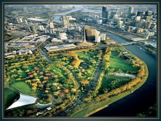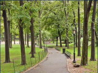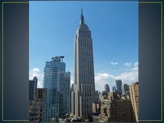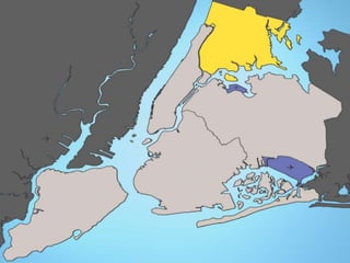 El documento proporciona información sobre la ciudad de Nueva York, incluyendo sus 5 distritos (Manhattan, Bronx, Brooklyn, Queens y Staten Island), sus principales atracciones como el Central Park, la Estatua de la Libertad, el Jardín Botánico y el Zoológico del Bronx, así como detalles sobre el aeropuerto JFK y LaGuardia en Queens. También resume brevemente la historia y características de cada uno de los distritos de la ciudad.
