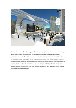 Second Life es un mundo virtual desarrollado por Linden Lab que permite a los usuarios interactuar a través de avatares. Los usuarios, conocidos como residentes, pueden explorar el mundo virtual, interactuar entre sí, crear contenido y comerciar bienes virtuales. Originalmente concebido como un entorno de juego, Second Life evolucionó hacia una plataforma guiada por la comunidad y basada en la creatividad de los residentes. Aunque el acceso básico es gratuito, los residentes deben pagar una tarifa mensual para comprar terrenos virtual