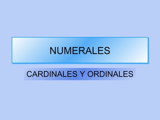 El documento lista los numerales cardinales y ordinales en español de 0 a 1.000.000.000.000. Explica cómo se escriben y pronuncian los números hasta el 30, entre 31 y 99, y mayores de 100. También cubre cómo se escriben fechas y números grandes como 2008 y 100.000 en palabras. Por último, detalla cómo se usan los ordinales del 1o al 10o y después del 10o para papas y reyes.