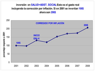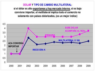 El documento analiza los resultados económicos, sociales y financieros durante la era K. Concluye que el modelo económico fue sustentable y robusto, ya que soportó crisis internacionales manteniendo bajos niveles de desempleo, pobreza e inflación. La industria y agroindustria impulsaron el crecimiento a través de exportaciones que generaron superávit. Se necesita proteger estos sectores con tipo de cambio administrado para mantener la producción interna.