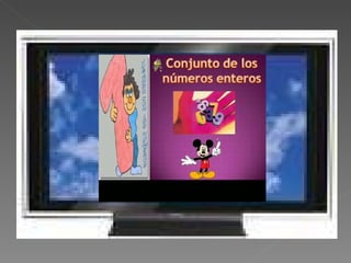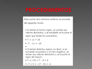 El documento explica los números enteros (Z), incluyendo su definición como la unión de los números positivos, cero y negativos. Describe las operaciones de suma y resta de números enteros, y presenta ejercicios prácticos para practicar estas operaciones colocando números en cuadrículas y estrellas.