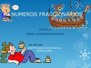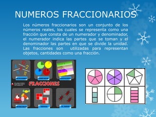 Este documento describe los números fraccionarios y las diferentes clases de fracciones. Explica que los números fraccionarios representan partes de un todo y constan de un numerador y denominador. Luego define las tres clases de fracciones: fracciones propias cuando el numerador es menor que el denominador, fracciones impropias cuando el numerador es mayor, y fracciones iguales a la unidad cuando numerador y denominador son iguales. Finalmente, propone algunas actividades para practicar el tema.