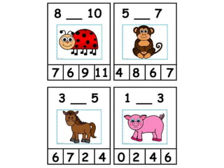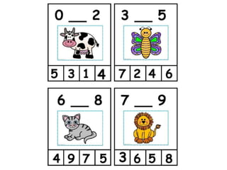 Este documento presenta 16 tarjetas didácticas en dos tamaños para que los niños practiquen la noción de posición de los números en la recta numérica. Las tarjetas contienen números ordenados con espacios vacíos para que los niños completen. El autor compartió las tarjetas con la esperanza de que sean útiles para otros niños, pero no se permite usarlas con fines comerciales ni compartirlas en otros sitios web.
