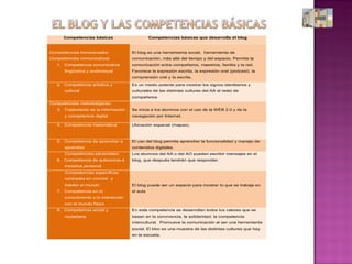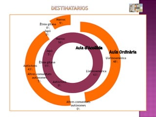 El documento describe un proyecto en un aula de acogida de una escuela primaria en Sant Cugat del Vallès, España. El proyecto implementa un blog personal para un estudiante árabe de sexto grado para promover sus habilidades comunicativas y digitales a través del uso de la tecnología, dada la diversidad lingüística del aula. También discute cómo las TIC pueden acercar diferentes lenguas y culturas en un salón de clases multicultural.