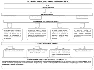 La función de nutrición involucra los procesos mediante los cuales obtenemos energía y materiales de los alimentos. Estos incluyen la digestión, la cual comienza en la boca y finaliza en el intestino grueso, y la respiración celular en los pulmones donde se produce el intercambio de oxígeno y dióxido de carbono. La circulación sanguínea a través del corazón, arterias, venas y capilares distribuye los nutrientes y oxígeno por el cuerpo, mientras que los riñones, la