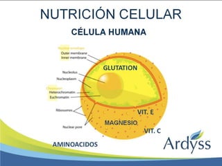 La nutrición celular puede ser autótrofa u heterótrofa. La nutrición autótrofa incluye la quimiosíntesis, que utiliza energía química y se encuentra en células procariotas, y la fotosíntesis, que genera alimento en bacterias y plantas utilizando la clorofila. La nutrición heterótrofa ocurre en organismos incapaces de elaborar su propio alimento, que se alimentan de compuestos inorgánicos presentes en otros organismos, y se clasifica en holozoica, saprofita
