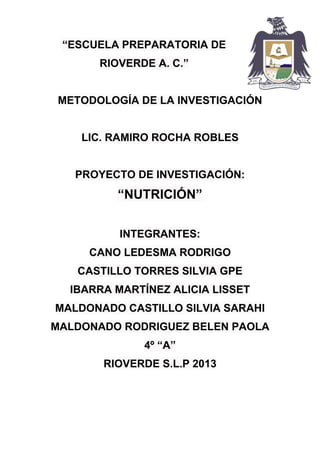 de investigación acerca de la nutrición en general y dentro de nuestra ciudad,