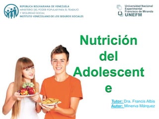 Este documento discute las necesidades nutricionales de los adolescentes. Señala que debido a los cambios físicos y psicológicos durante esta etapa, la nutrición es importante para el bienestar. También destaca que las recomendaciones nutricionales deben considerar factores individuales como la genética, cultura y estrato socioeconómico. Finalmente, proporciona tablas con los requerimientos diarios recomendados de energía, proteínas, vitaminas y minerales para adolescentes.