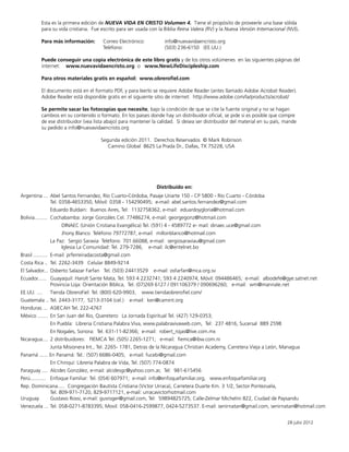 Este documento presenta una guía para el uso del libro "Nueva Vida en Cristo Volumen 4". Provee instrucciones para maestros sobre cómo discipular efectivamente a otros utilizando el libro como una herramienta, con énfasis en aplicar las lecciones a la vida práctica y cultivar hábitos espirituales como la oración y el estudio bíblico. También incluye una lista de distribuidores del material en diferentes países de Latinoamérica y España.