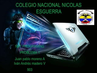 El documento presenta información sobre un problema de programación para Juan Pablo Moreno A y Iván Andrés Madero V del Colegio Nacional Nicolás Esguerra. Contiene el número 903.