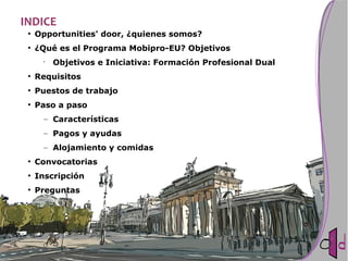 El programa Mobipro-EU ofrece a jóvenes desempleados españoles la oportunidad de formarse y trabajar en Alemania a través de una formación profesional dual, totalmente subvencionada. Con una duración de hasta 3 años y medio, los participantes aprenderán alemán y realizarán prácticas remuneradas en sectores con alta demanda laboral. Los requisitos incluyen ser europeo, tener entre 18 y 35 años, estar desempleado y haber finalizado la educación secundaria.