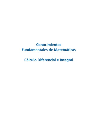 Este documento presenta la información de contacto de las autoridades de la Universidad Nacional Autónoma de México y describe brevemente el libro "Conocimientos Fundamentales de Matemáticas: Cálculo Diferencial e Integral". El libro forma parte de una colección creada por la UNAM para producir materiales educativos de alta calidad para el nivel medio superior.