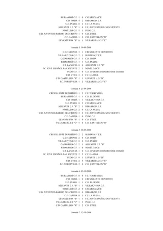 Este documento proporciona los resultados y la clasificación de la 3a División Grupo VI de fútbol en España después de la jornada 23. Presenta los resultados de cada jornada, la clasificación general, y estadísticas de cada equipo como puntos, goles a favor y en contra. El Villa Joyosa CF ocupa el primer lugar con 49 puntos después de 14 victorias, 7 empates y 2 derrotas.