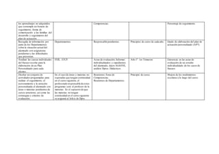 El documento describe un plan para mejorar los resultados académicos de los estudiantes implementando principios de neuroeducación. Se revisarán los programas y criterios de evaluación, se innovará en el proceso de enseñanza aplicando neuroeducación, y se impulsará una evaluación formativa y transparente. También se definirá un programa de refuerzo para recuperar aprendizajes no adquiridos, se analizarán las causas individuales de fracaso escolar, y se diseñarán actividades de seguimiento personalizado.