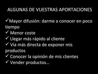 El documento enfatiza la importancia de definir objetivos claros para guiar las decisiones y el uso de la red. Se mencionan algunas ventajas de tener presencia en línea como mayor difusión, menor costo y llegar más rápido a los clientes. Finalmente, señala que los objetivos deben estar definidos y alineados con las necesidades de los usuarios/clientes, y debe existir un plan para lograrlos.