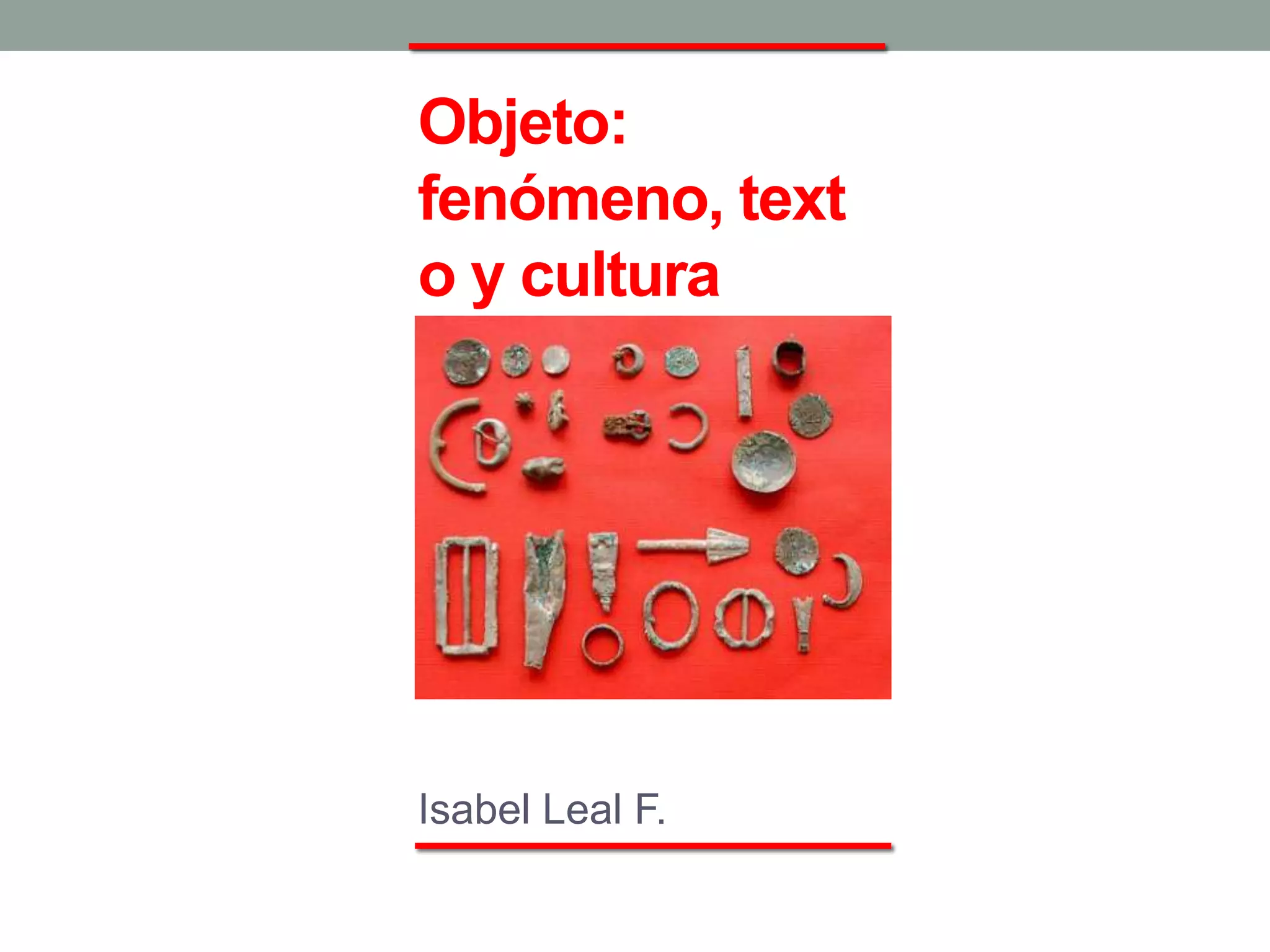 Este documento explora el concepto de objeto desde tres perspectivas: como fenómeno, como texto y como valor cultural. Discute las diferentes dimensiones de un objeto, incluyendo su producción, materialidad, función, significado simbólico y la forma en que es percibido por el usuario y la sociedad. Concluye que los objetos juegan un papel fundamental en cómo los seres humanos interactúan con el mundo y expresan aspectos de su cultura e identidad.