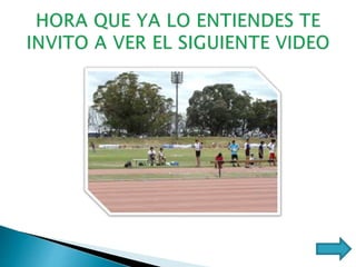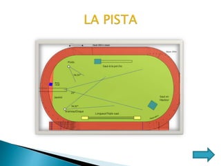 El documento habla sobre el atletismo, que implica una serie de pruebas de competición como correr, saltar y lanzar. Estas pruebas se dividen en de pista, campo y especiales. El objetivo es adquirir conocimientos básicos sobre las diferentes pruebas para aplicarlos en clases de educación física y mejorar la eficiencia motriz.