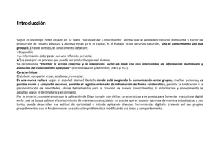 Este documento presenta un tutorial sobre la gestión de las tecnologías de la información y la comunicación (TIC) utilizando la herramienta Diigo. Introduce Diigo como una plataforma que permite distribuir, compartir, crear y colaborar información de manera ordenada. Explica las características de Diigo y cómo puede usarse para fomentar una cultura digital constructivista donde los usuarios aprenden de forma autodidacta. A continuación, el tutorial describe las funciones básicas de Diigo como resaltar texto, marcar p