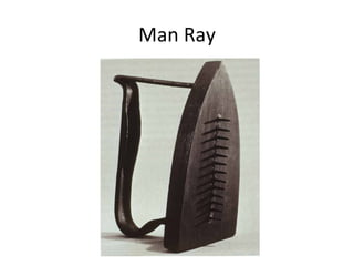 El documento habla sobre varios artistas surrealistas como Man Ray, Meret Oppenheim, Dalí y Picasso y cómo sus obras han influido en el arte actual. También menciona a algunos artistas contemporáneos como Nancy Fouts, Mona Hatoum y Kris Kuksi que han sido influenciados por el surrealismo.