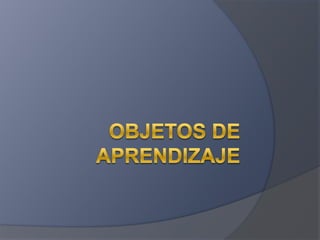 Este documento define un objeto de aprendizaje como un recurso digital autocontenible y reutilizable con un propósito educativo. Debe incluir contenido, actividades de aprendizaje y elementos de contextualización. Además, proporciona ejemplos de elementos que componen un objeto de aprendizaje como objetivos, contenido, actividades y evaluación. Finalmente, ofrece ejemplos de repositorios donde se pueden encontrar objetos de aprendizaje.