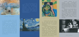 El documento presenta información sobre cuatro obras de arte: Impresión, sol naciente de Claude Monet, que representa el puerto de El Havre y dio nombre al movimiento impresionista; La noche estrellada de Vincent van Gogh, pintada durante su internamiento en un hospital psiquiátrico y perteneciente al posimpresionismo; Fränzi ante una silla atada de Ernst Ludwig Kirchner, elaborada en 1910 y perteneciente al expresionismo; y el musical Johnny Johnson, basado en la novela satírica The Good Soldier Švejk y presentado por primera