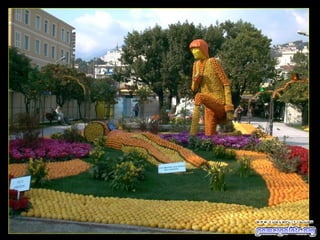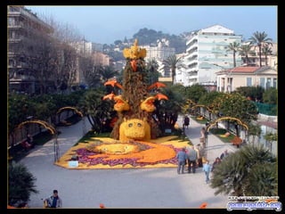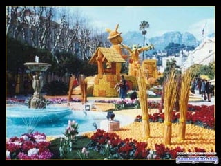 El documento habla sobre un festival de cítricos que se celebra en Menton, Francia. Invita al lector a compartir la presentación con amigos si les ha gustado y ofrece más presentaciones similares en un sitio web, así como la opción de suscribirse para recibir presentaciones por correo electrónico de forma gratuita.