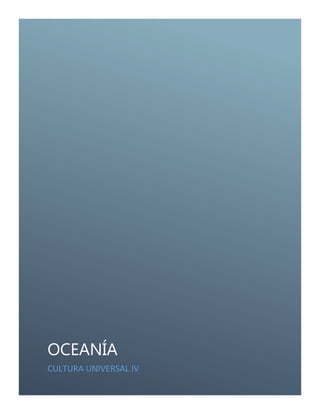 Oceanía está compuesta de varios países y territorios insulares en el océano Pacífico, incluyendo Australia, Nueva Zelanda y miles de pequeñas islas. Fue poblada originalmente por personas provenientes del sureste asiático, y fue explorada posteriormente por europeos como Magallanes, los portugueses, holandeses y británicos. Actualmente la región tiene una población heterogénea y las lenguas más habladas son el inglés y francés, aunque también se conservan muchas lenguas indígenas. El relieve