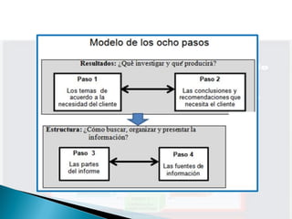 El documento presenta un enfoque sobre la organización de recursos y referencias para la investigación, destacando la importancia de bases de datos y sitios web institucionales. Se mencionan diferentes tipos de fuentes y se proporcionan formularios para organizar fuentes primarias, secundarias y terciarias. Además, se recomienda el uso de herramientas como Microsoft Word y servicios en línea para dar formato a las referencias en APA.
