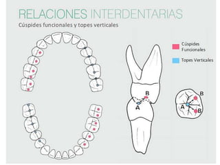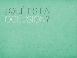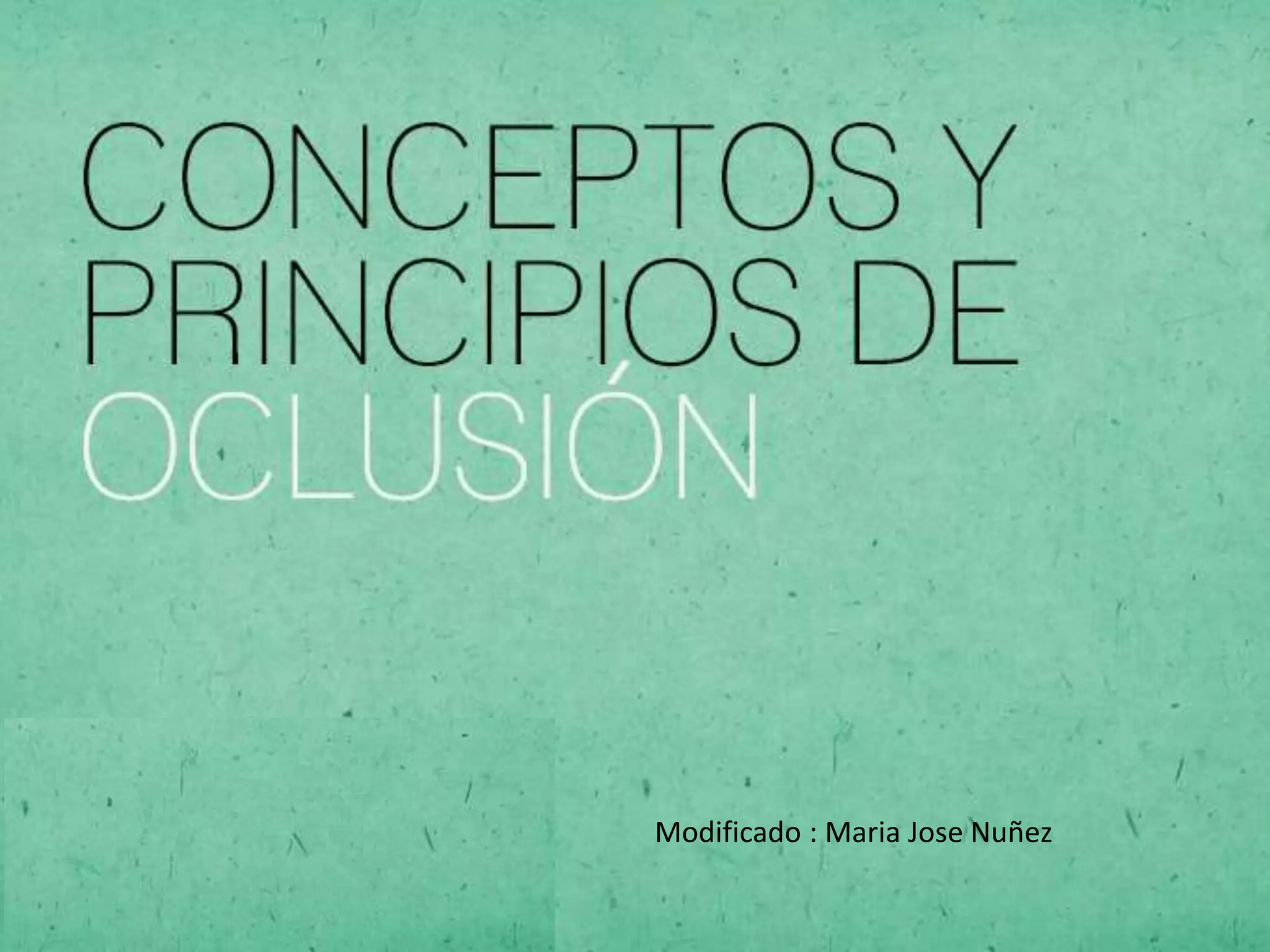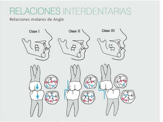 Este documento describe los conceptos fundamentales de la oclusión, incluyendo las relaciones interdentales, musculares y articulares. Explica que la oclusión se refiere a la relación entre los dientes superiores e inferiores, ya sea en posición estática o funcional. Además, describe los tres tipos de oclusiones según su clasificación funcional-terapéutica, las características de una oclusión ideal, y los diferentes tipos de malas oclusiones.