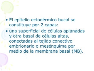 • El epitelioectodérmico bucal se